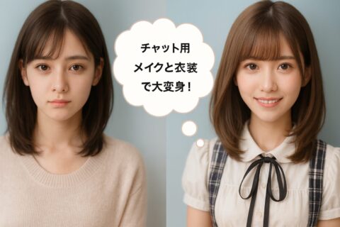 ①チャット用メイク&衣装で“別人級”に大変身!